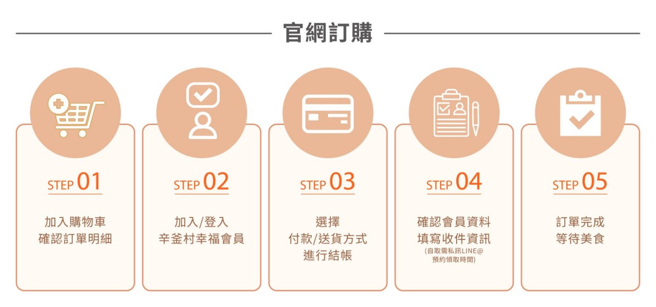 商品的訂購方式有哪些?官方網站直接下單或加入辛釜村官方LINE@ (@sv2022)私訊訂購。