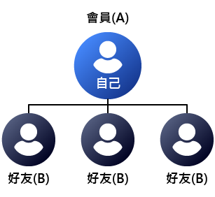 若是你的好友也加入這個計畫,好友將可以得到他第一層所有好友 "千分之一" 投注回饋金。