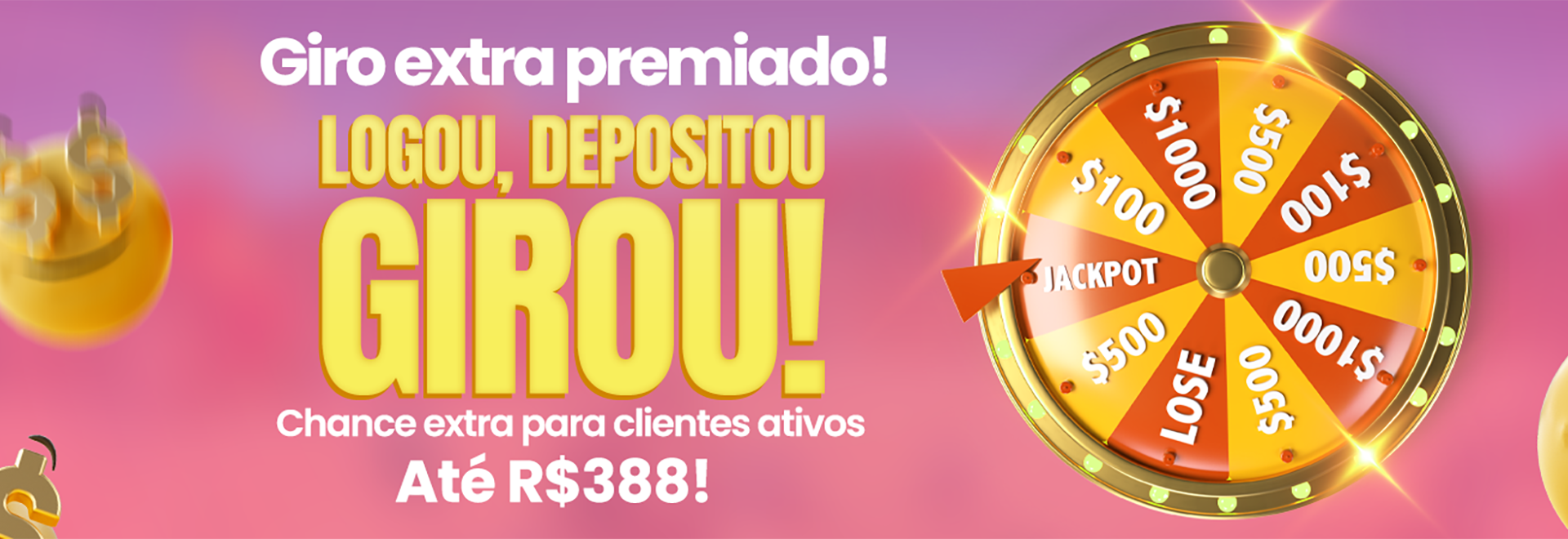 GANHE TAMBÉM UM GIRO NA RODA DA FORTUNA COM PRÊMIO DE ATÉ